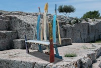 Sculture che l’autore definisce “sedute” per evocare quella posizione di riposo che per secoli ha favorito la trasmissione orale della tradizione.
