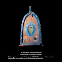 “Il Pellegrinaggio d’Amore è una monumentale installazione, un cammino spirituale artistico contemporaneo, una ricerca espressiva che intreccia i linguaggi di pittura scultura e scrittura, realizzata con i legni delle vecchie barche dei pescatori siciliani e dei migranti.